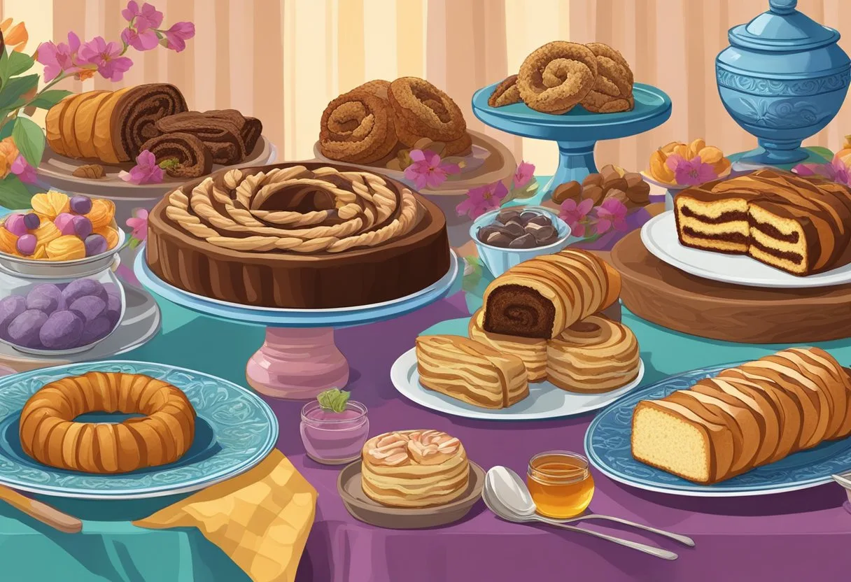 Jewish pastries encompass a variety of sweet and savory items, often rooted in Ashkenazi traditions. One can find pastries like rugelach, small crescent-shaped pastries filled with ingredients such as chocolate, nuts, or fruit. Another typical pastry is hamantaschen, triangular filled pockets traditionally eaten during the Purim festival.